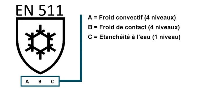 A – Classe de résistance thermique (RCT) mesurée sur l’ensemble des couches de tissu. Mesure le pouvoir isolant d’un vêtement. Il existe 3 classes de protection.